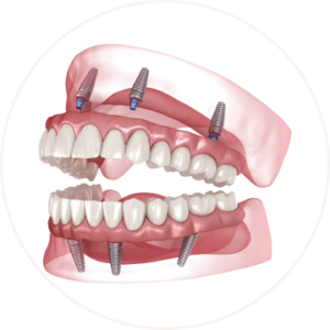 A female patient who attended after years of failing teeth and multiple dental treatments, now with dentures and finding wearing them difficult. Her quality of life and confidence were poor and wanted to be able to smile and eat properly again.
